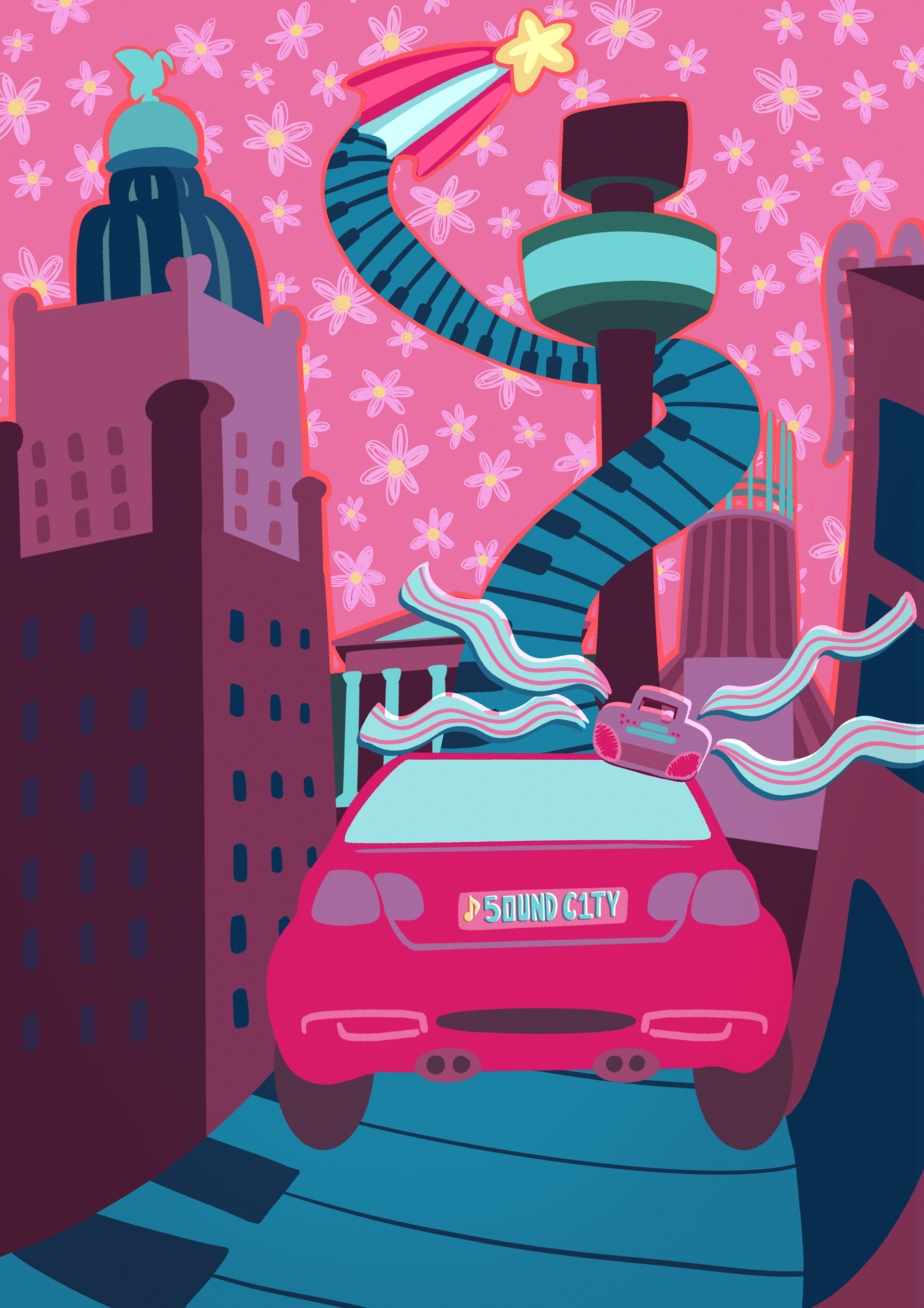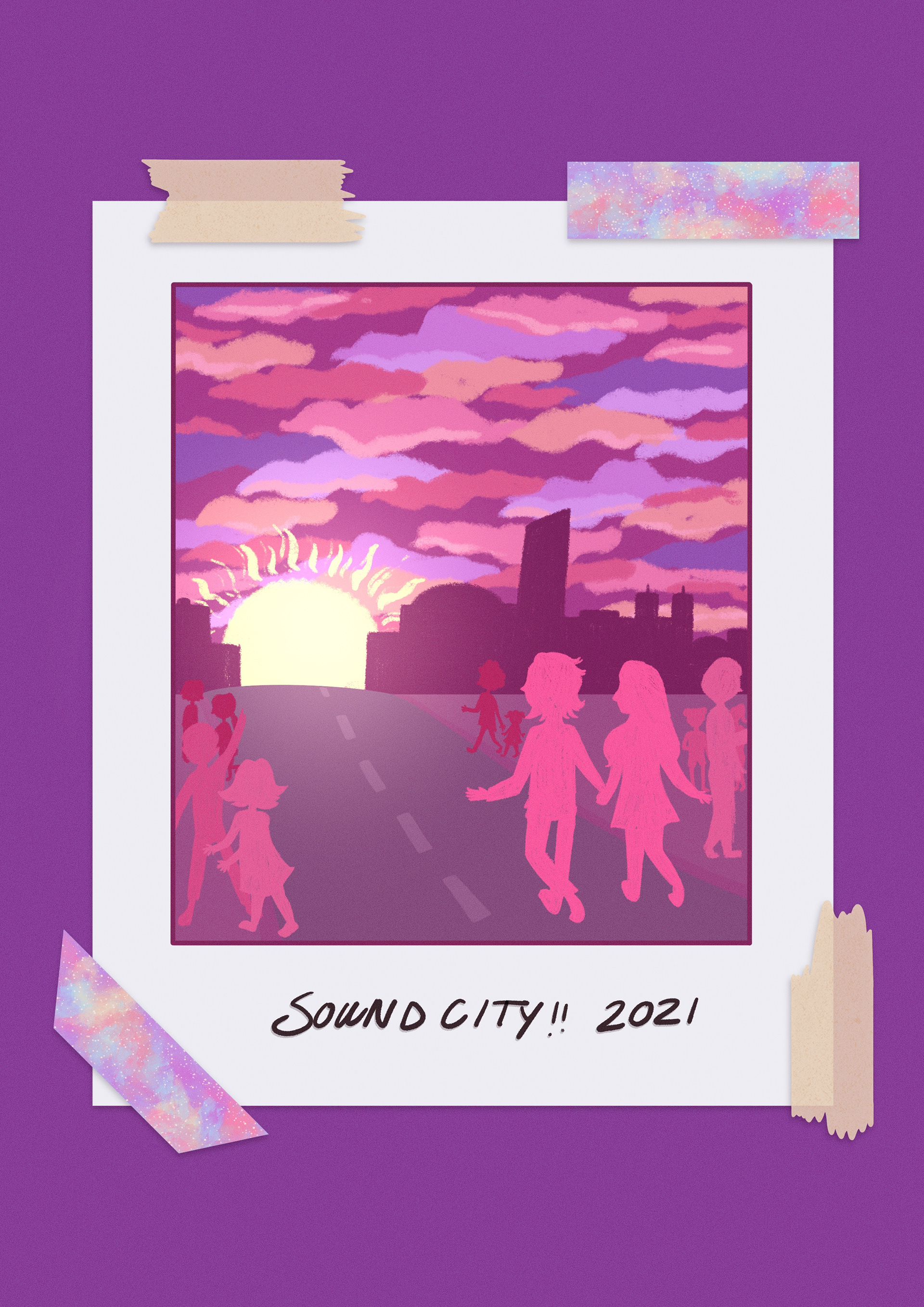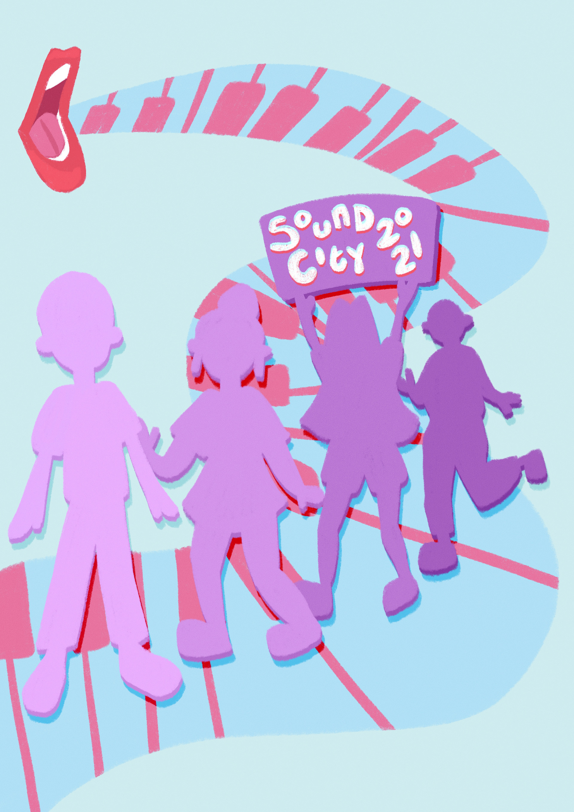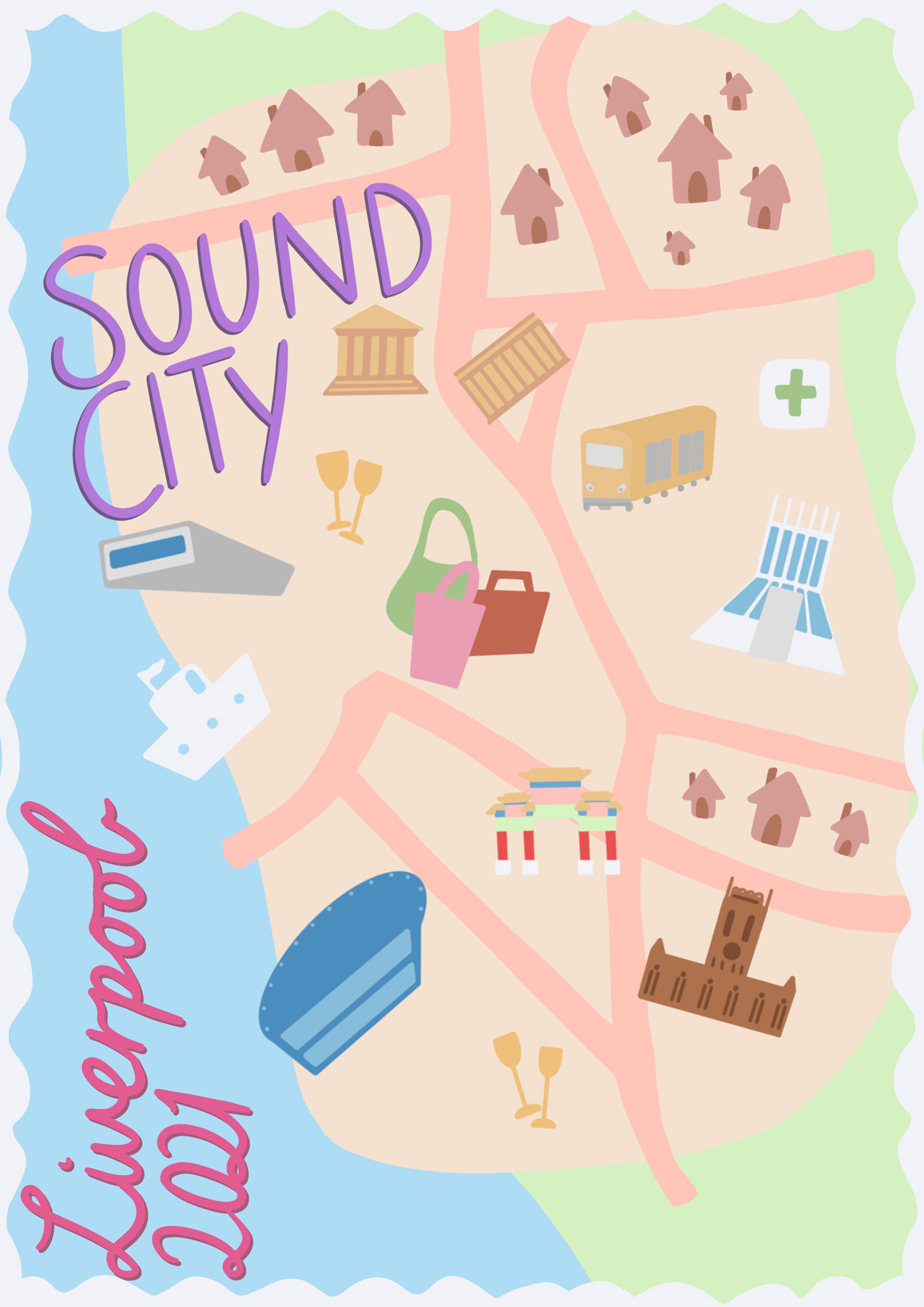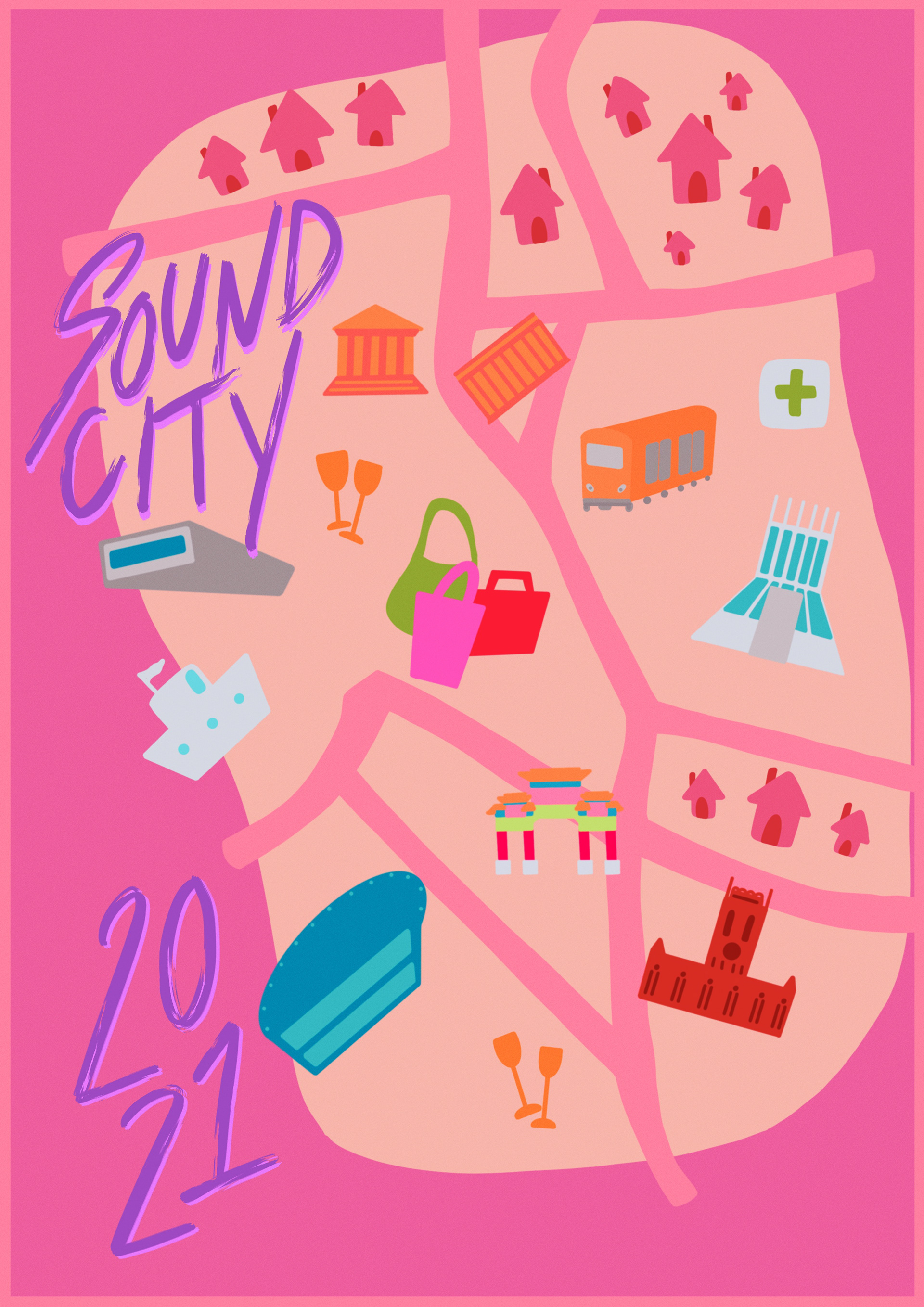 Final Poster Design for Liverpool Sound City Festival 2021. This poster was selected to be displayed as part of the festival in popular destinations across the city. Pictured below are examples of my planning process for this project.